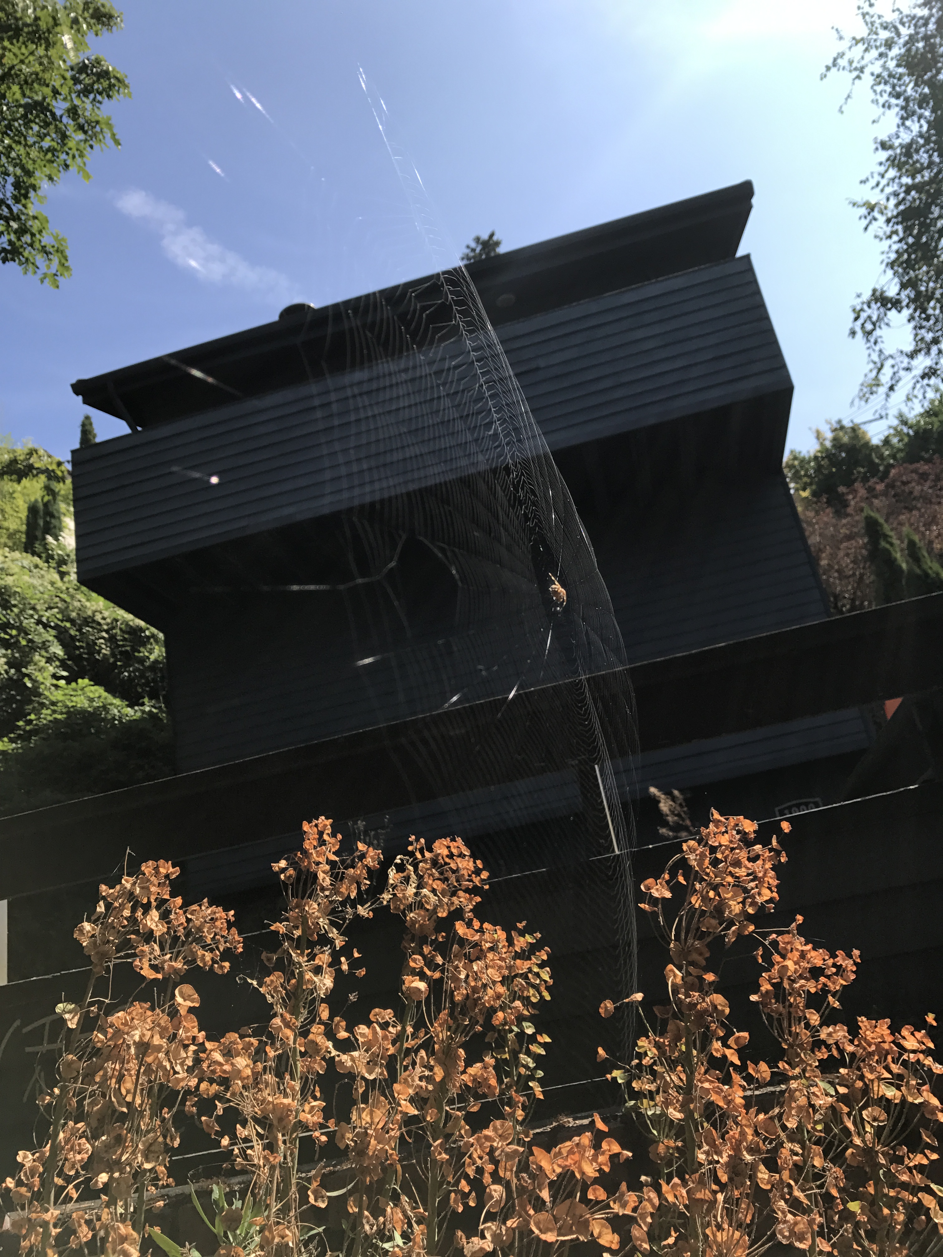 generation to generation like some kind of special meatloaf. Maybe these spiders like to show off how large of a web they can build and how fancy they can attach it to a branch or a staircase railing.